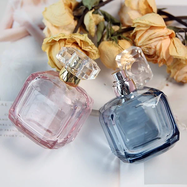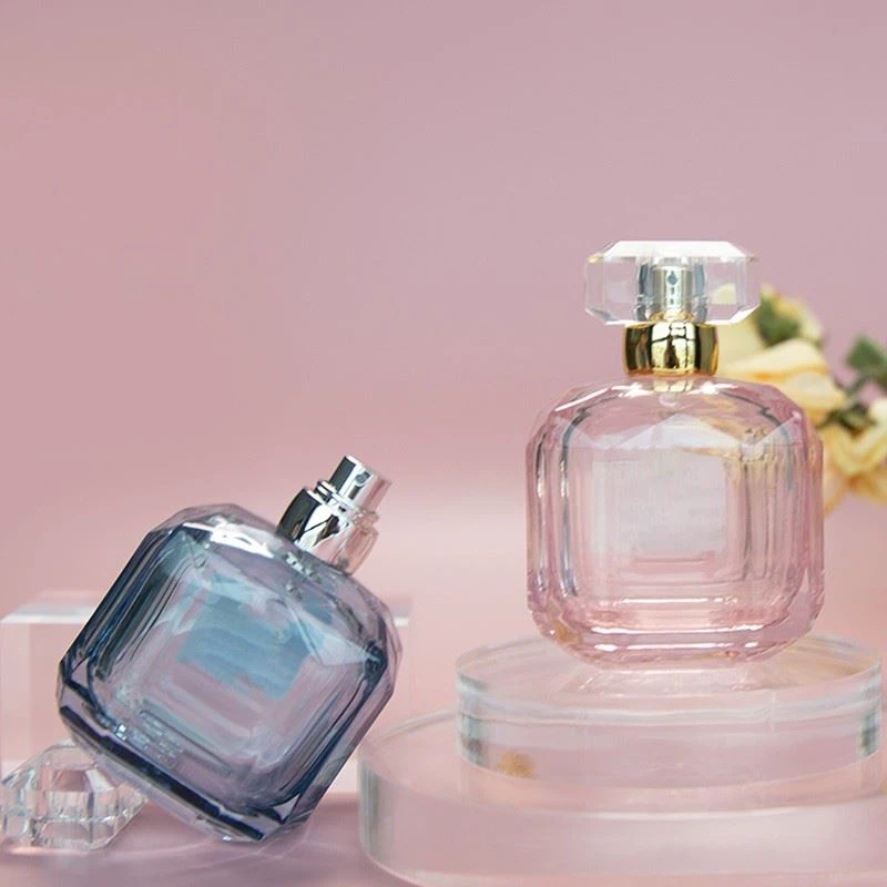 Den specifikke størrelse af disse firkantede glasparfumeflasker er L 67,2 × B 57,2 × H 95,72 mm, dens vægt er 256 g, og nettoindholdet er 100 ml. Vi har lyserøde og blå farver, men vi tager også gerne imod alle brugerdefinerede farver. Flaskens overordnede design er lille og udsøgt, og farven er meget elegant, velegnet til frisk parfume, men denne flaske er meget tung i hånden og fremstår ikke billig.